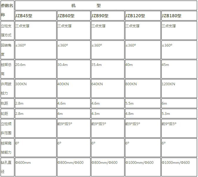 JZB步履系列樁機(jī)主要技術(shù)參數(shù)